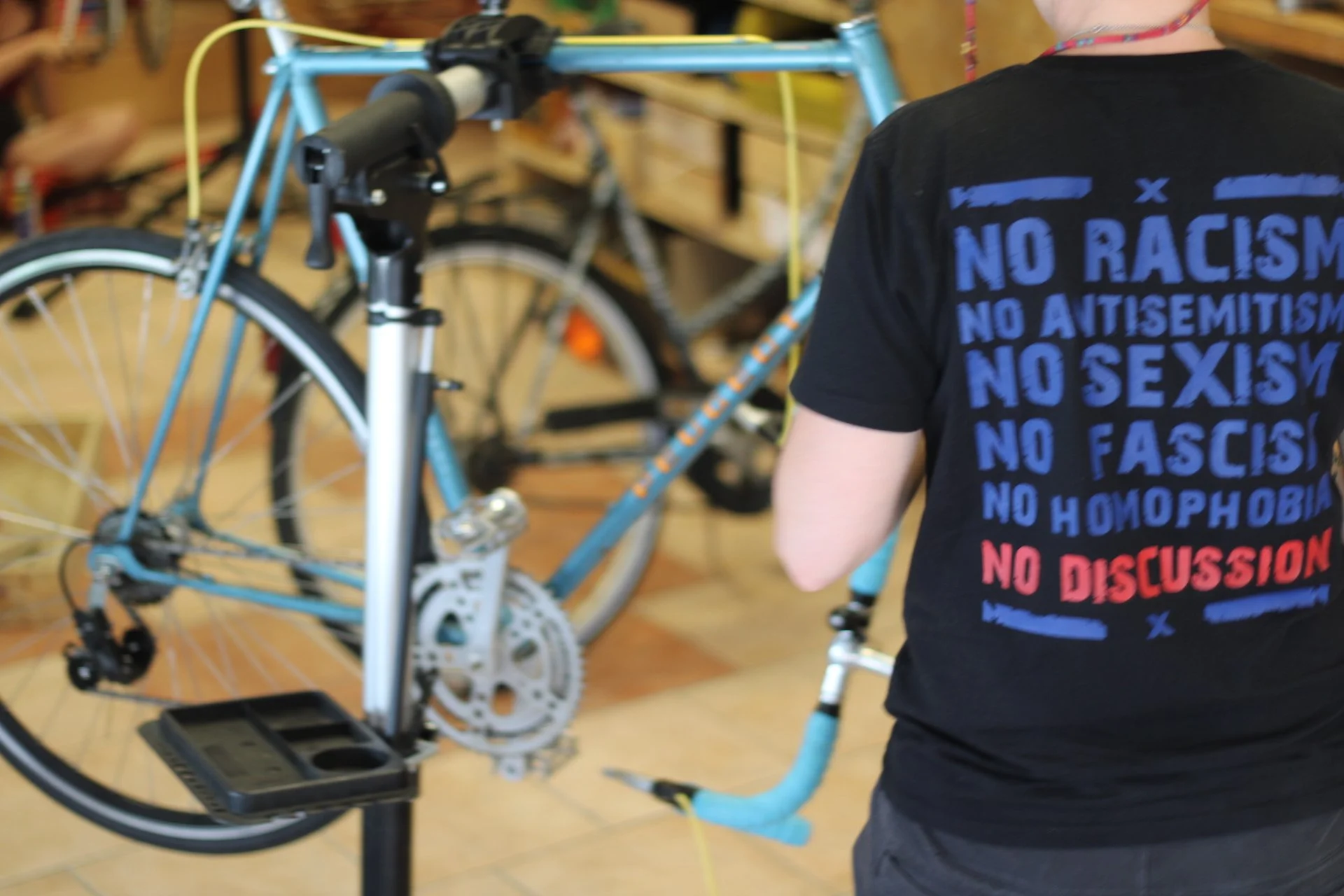 Die Bikekitchen ist ein queerfeministisches Projekt. Wir haben den Anspruch, machtkritisch zu arbeiten und zu begegnen. Besonders für Frauen und Queers wollen wir einen sicheren Rahmen, einen „safer space“ schaffen, um am Fahrrad zu schrauben und uns auszutauschen ohne Mansplaining und Mackertum. Dafür gibt es Regeln für ein respektvolles Schrauben. Außerdem gibt es zusätzlich zur regulären Bikekitchen auch Treffen nur für Frauen und Queers.